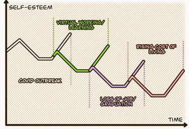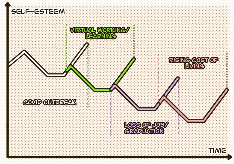 For example, one who just graduated and started one's first engineering job. Just three months into this new phase of life, COVID hit, forcing one to work from home. Balancing work virtual meetings and family demands was tough. Before one could figure it out, one got laid off due to the company's restructuring, adding more financial stress to the ongoing student loans repayment. With so many changes in just 1.5 years, one was overwhelmed by the consecutive changes and might start using humor to cope or minimize the perceived impact.
